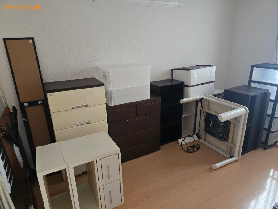スタンドミラー、カラーボックス、こたつ等の処理にお困りのお客様からご相談いただきました。見積り額がご予算内だったことがご依頼の決め手になったようです。「見積もりだけの予定でしたが、荷物を見てその場で廃棄の対応をしていただきました!」とのお声をいただきました。片付け110番では、最短即日お伺いさせていただきます。不用品がございましたらまたいつでもご相談ください。 |